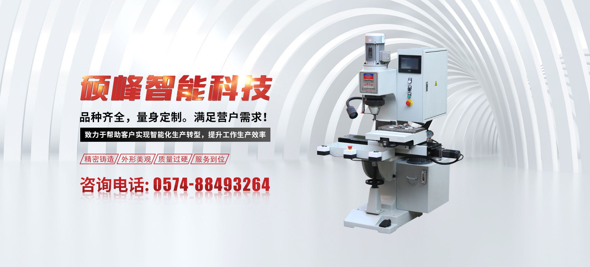 寧波市碩峰智能科技有限公司成立于2018年,坐落于寧波市鄞州區(qū)云龍工業(yè)區(qū)。公司主要從事于鉚釘機(jī)自動(dòng)化設(shè)備及周邊設(shè)備的研發(fā)、生產(chǎn)、銷售與服務(wù)。公司擁有數(shù)控加工中心,數(shù)控龍門加工中心,數(shù)控車床加工中心,線切割,搖臂鉆,磨床,剪板機(jī)等各種大型加工設(shè)備,確保一體化生產(chǎn),嚴(yán)格把控質(zhì)量關(guān),憑借公司的實(shí)力、誠信以及產(chǎn)品質(zhì)量獲得了業(yè)界的普遍認(rèn)可。